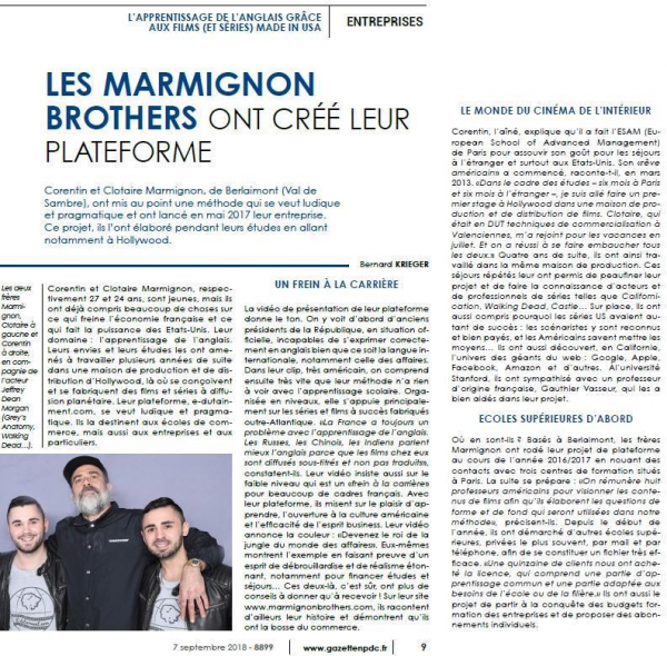 La startup des Marmignon Brother a été mit en avant dans la Gazette du Nord Pas-de-Calais ! Découvrez leur parcours du Nord Pas-de-Calais à Hollywood, de l’Université de Valenciennes à Stanford en passant par l’ESAM et enfin par leur startup Marmignon Brothers !